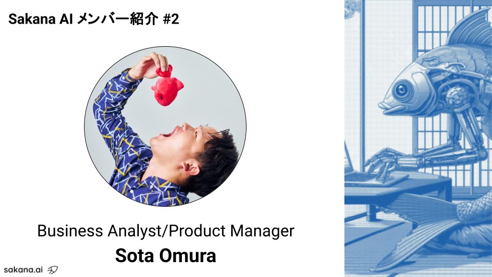 Sakana AIについてもっと知りたいですか?Sakana AIのApplied Teamで働くメンバーを週替わりで紹介していきます。この記事は今後も更新され、さらに多くのチームメンバーが追加される予定です。どうぞご期待ください!