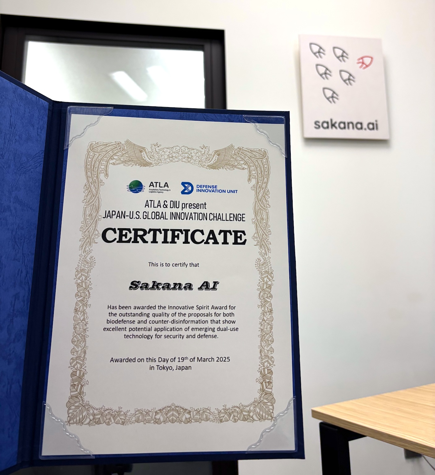 Sakana AIは、日本の防衛装備庁と米国国防総省傘下のDefense Innovation Unit(DIU)が主催するチャレンジで、バイオディフェンスと偽情報対策の両部門で新たなAIソリューションを提案し、世界60社の応募の内、日本企業として唯一の受賞を果たしました。(テレビ東京、2025年3月19日)