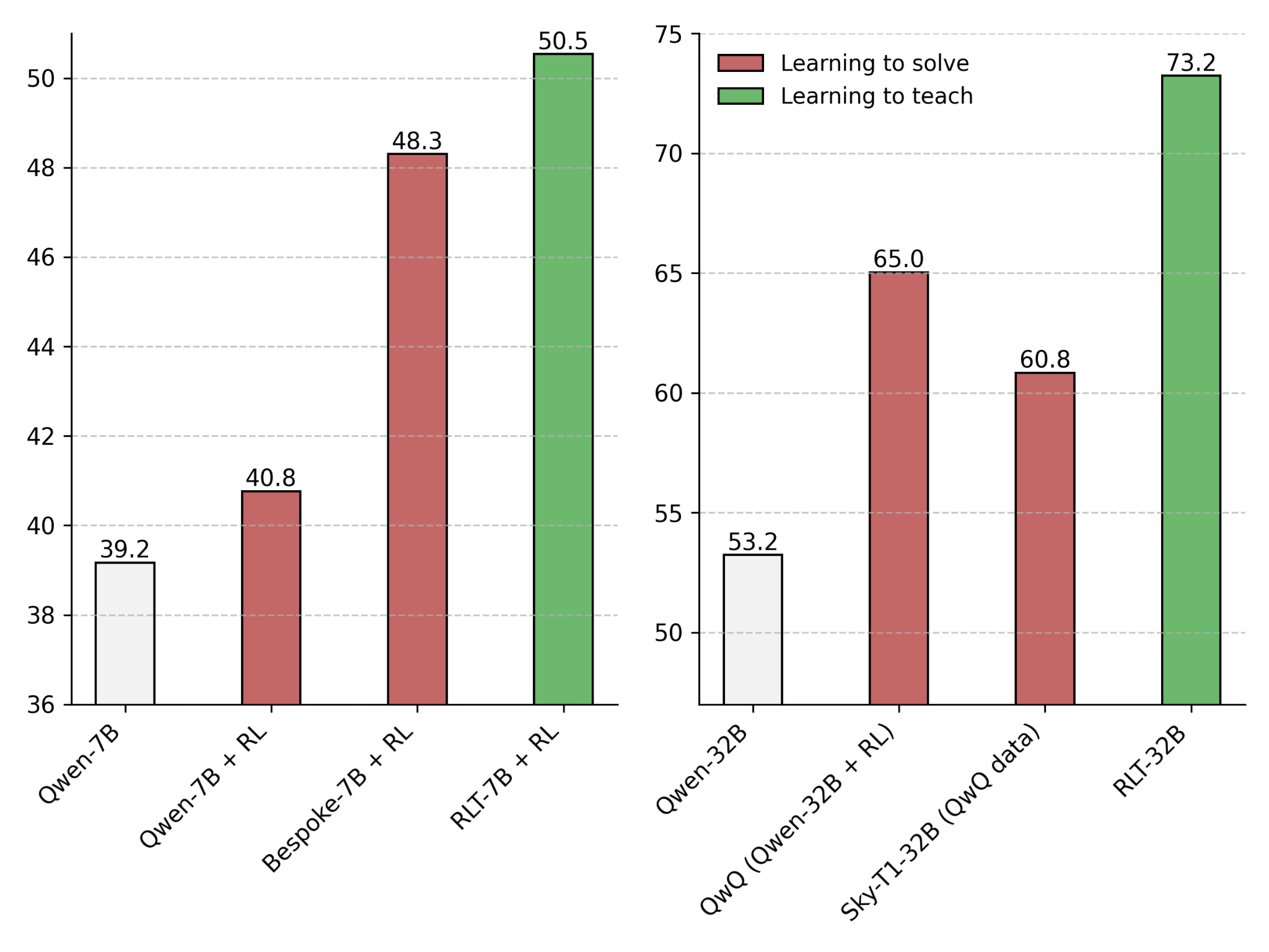 Our RLT framework rethinks how we build reasoning models. Rather than training models to solve problems from scratch, we train them to explain known solutions clearly, much like skilled human educators. This shift makes it possible to apply RL in areas once considered too difficult for language models to handle directly.