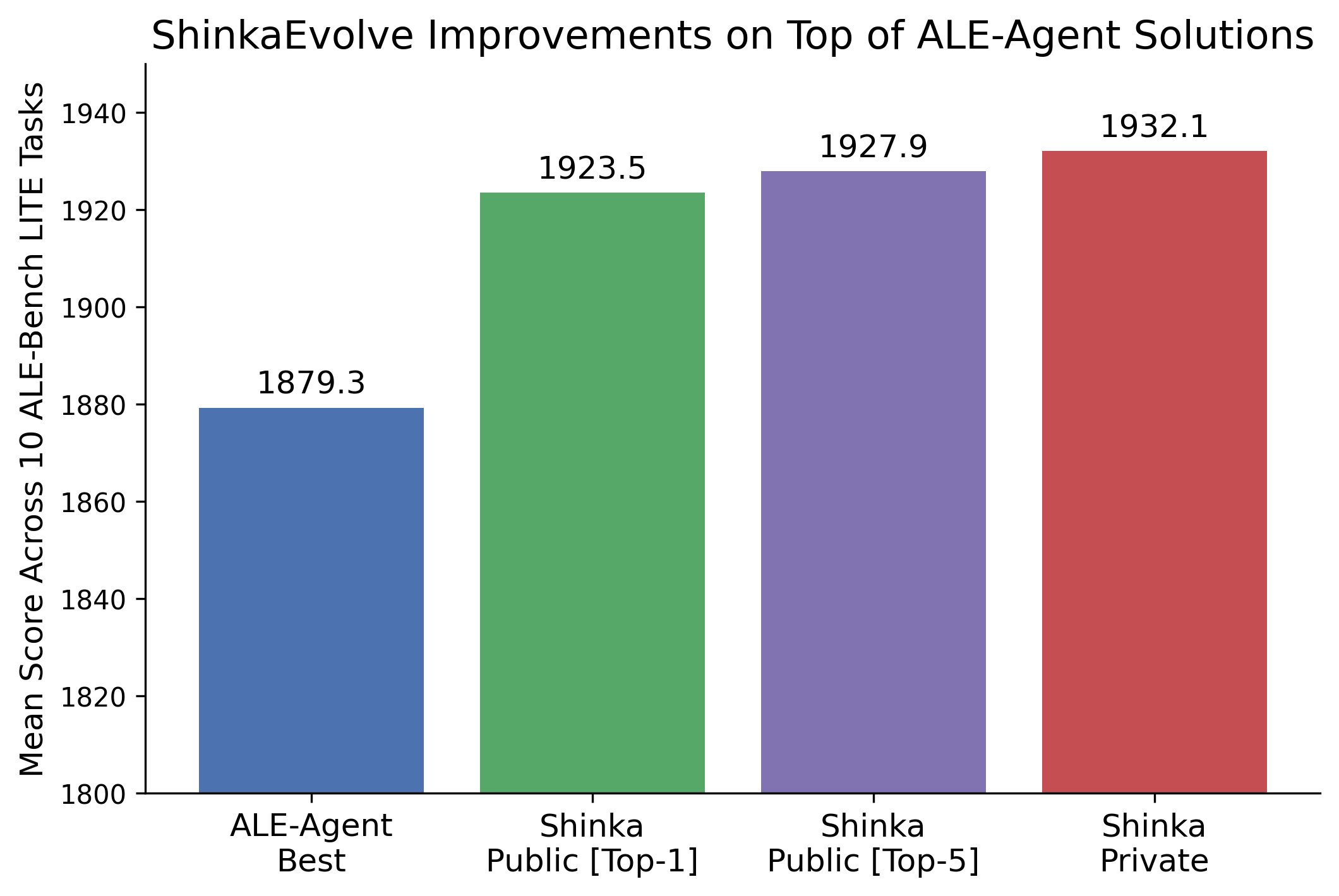 We took the best solutions discovered by a state-of-the-art agent (ALE-Agent) in the AtCoder heuristic contest, a competitive programming contest for NP-Hard optimization problems, where ShinkaEvolve is used to improve them further. It successfully found improvements across multiple tasks, boosting the average performance of the agent. On one task, its improvements were so significant that it would have achieved 2nd place if it had participated in the competition. It introduced clever enhancements to the ALE-Agent solution, like advanced caching and novel “targeted edge move” operators.