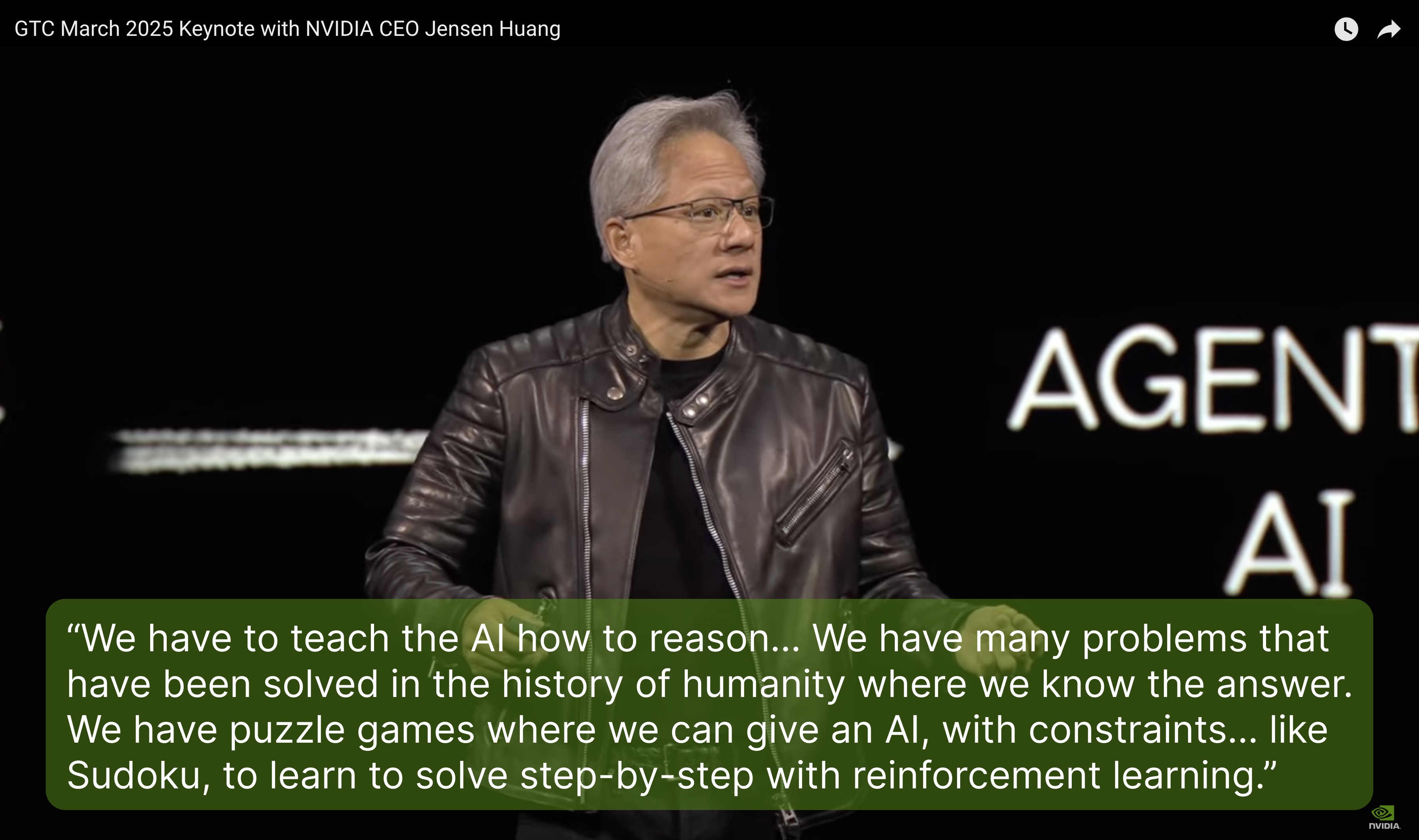 このプロジェクトは、2025年3月に開催されたNVIDIAのGTC開発者会議でも紹介されました。その際、NVIDIAのジェンスン・ファンCEOからは「AIのリーズニング能力を高める上で、数独のようなパズルが役立つだろう」とのコメントが寄せられています。
